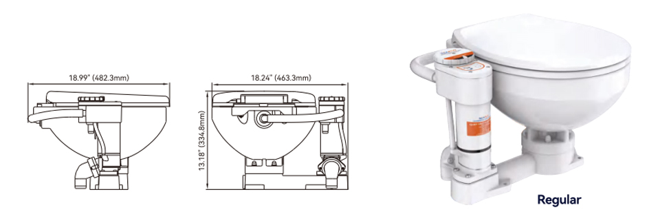 | SFMTE2-02-R | White | Built In Macerator | 10 A | 3/4″ Inlet 1 1/2″ Discharge | Regular | 24 Volt Electric Impeller | Ceramic bowl, Soft close seat |